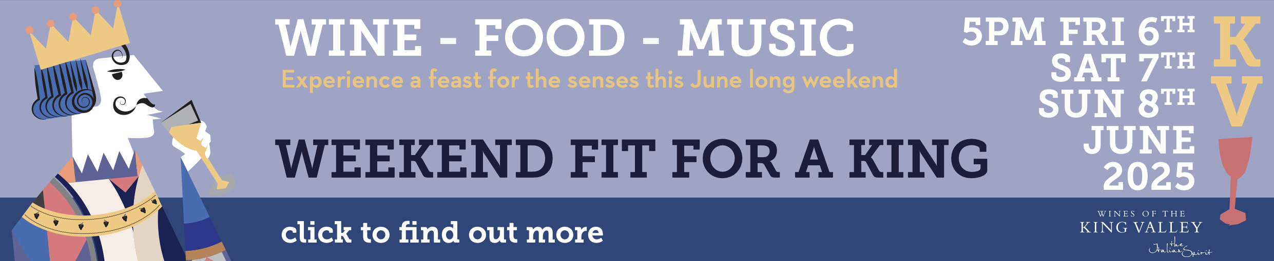 The Fit For a King weekend is all about good wine, good food, and good company, set against the stunning backdrop of the King Valley. Whether you’re here to discover a new favourite drop or simply unwind with friends among the vines, it’s the perfect way to experience the region at its best.