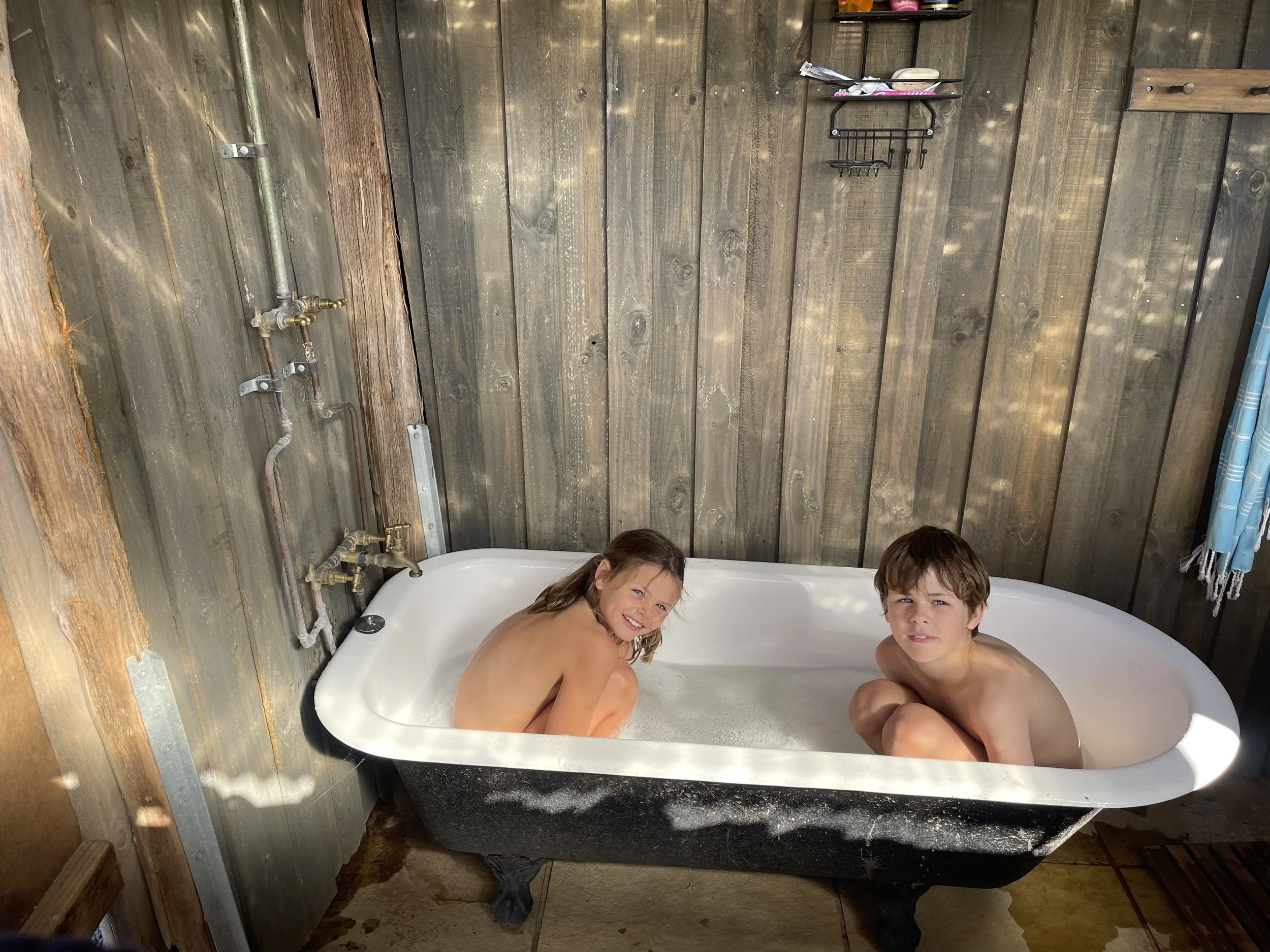 Karen and Peter’s grandchildren utilising the Bath Hut 2024
