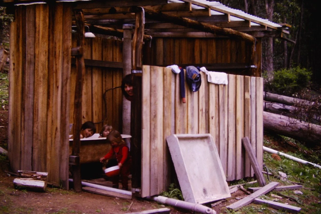 This was later upgraded to a wood fired gravity fed hot water unit which lasted many years. The Bath was removed in the early 1990’s and was replaced with a concrete showerbase. Like all timber structures the bath hut eventually began to decay and was leaning over so far, the roof was falling in the opposite direction.
